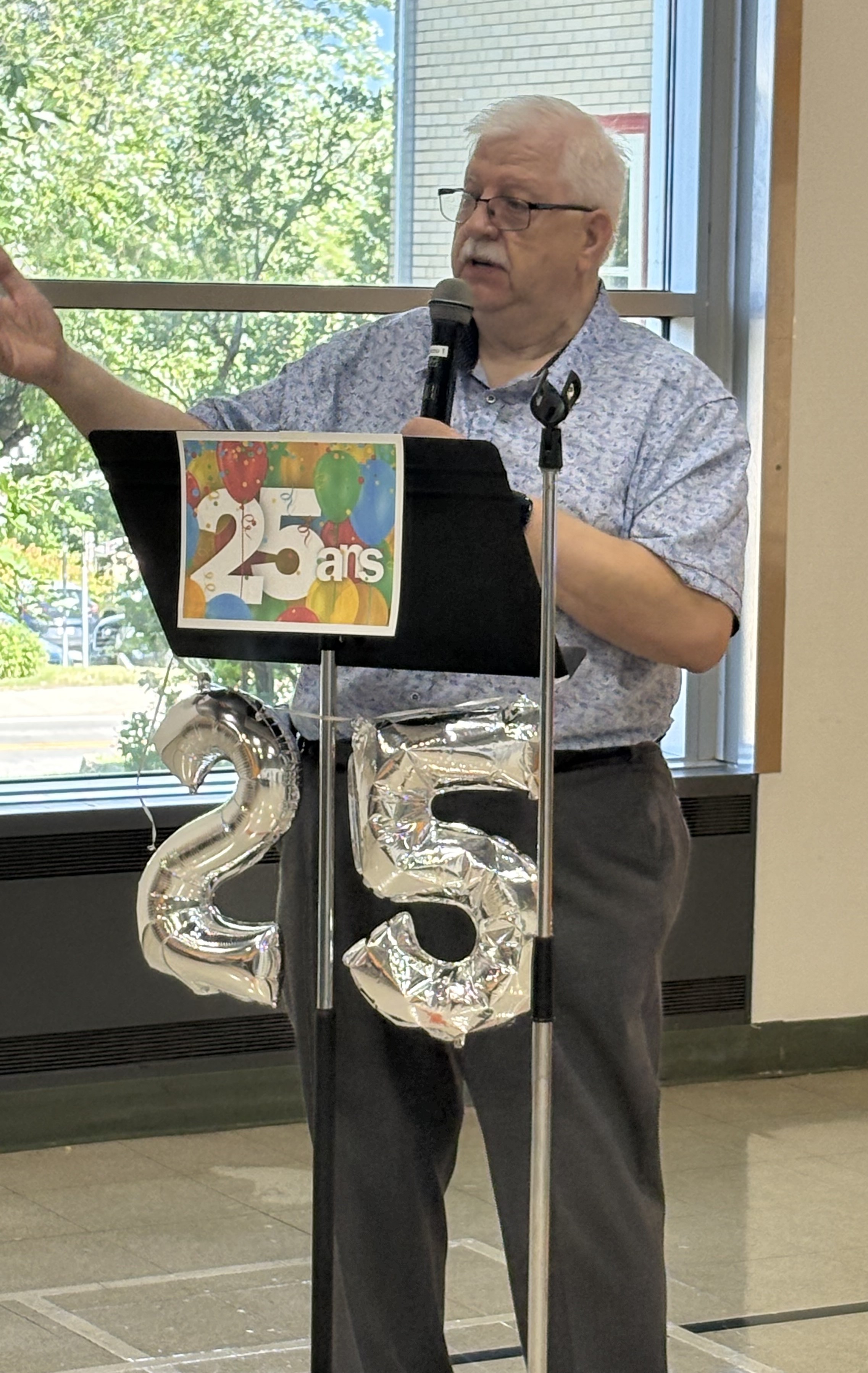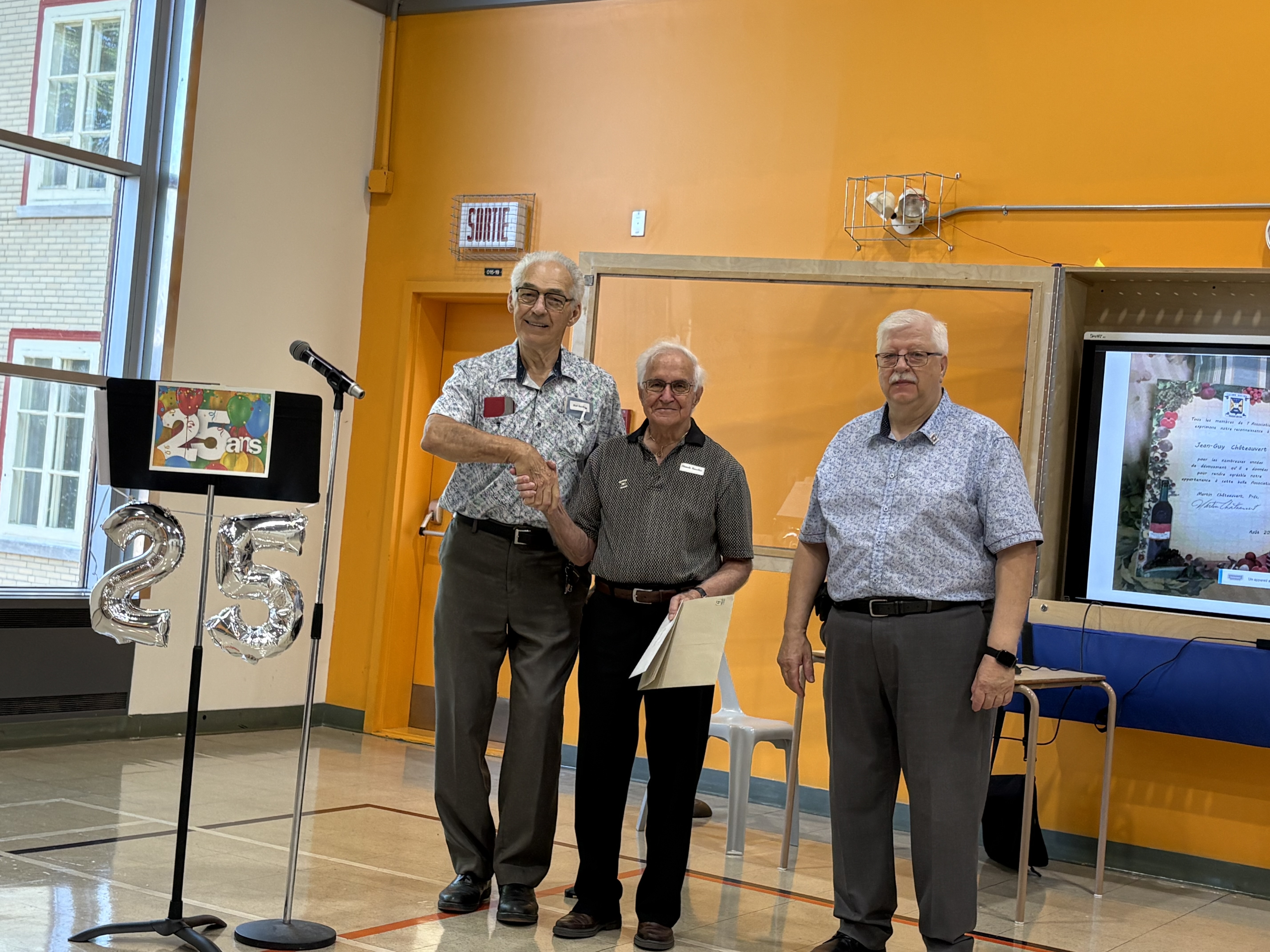 Un chaleureux merci à Réal Faucher (258) pour avoir animé avec sensibilité la section “La parole aux membres”, mettant en lumière 25 années de souvenirs et d’engagement au sein de l’Association. Hélène Faucher (249), Corinne Faucher (327) et Réal Faucher (258) et tous les membres qui ont pris la parole, ont partagé tour à tour leur vécu des 25 ans passés, enrichissant ce moment de témoignages authentiques. Réal a également lu les mots touchants de Claudette Boyte (317) et Albert Faucher (210), absents pour raison de santé. Nous adressons nos pensées à Claudette et lui souhaitons un prompt rétablissement.